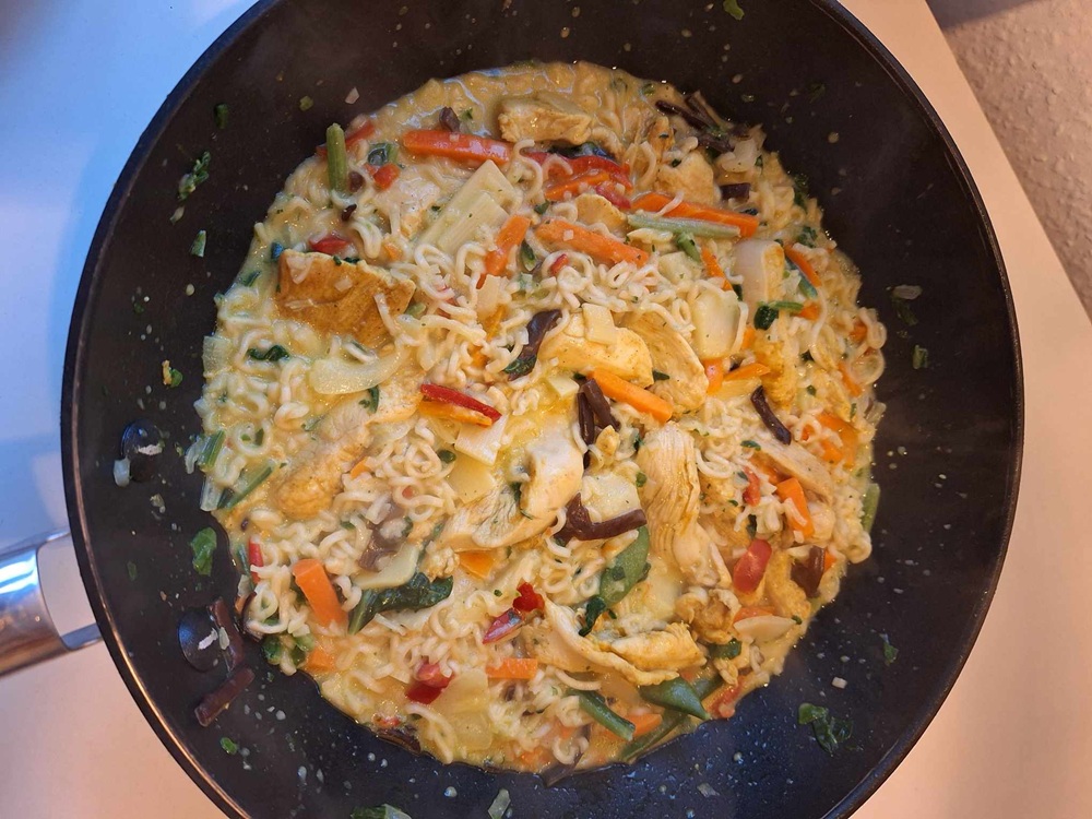 wok med kylling, karry og kokosmælk
